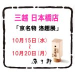 2025年10月13日 / 最終更新日時 : 2025年10月6日 hararyoukaku2 催事 三越 日本橋店「京名物 洛趣展」 催事のお知らせです。 【店舗】三越 日本橋店 【会場】7階=催事場 【期間】10月15日(水)~10月20日(月)最終日は18時閉場 【商品】御香煎 袋 13g 志そ香煎 袋 13g あられ香煎 袋 20 […]